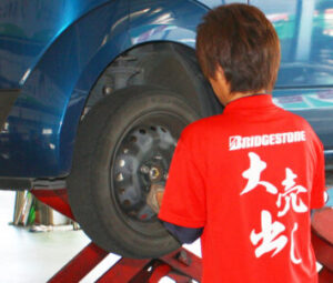 空気圧点検のほか、偏摩耗や外傷なども点検いたします。